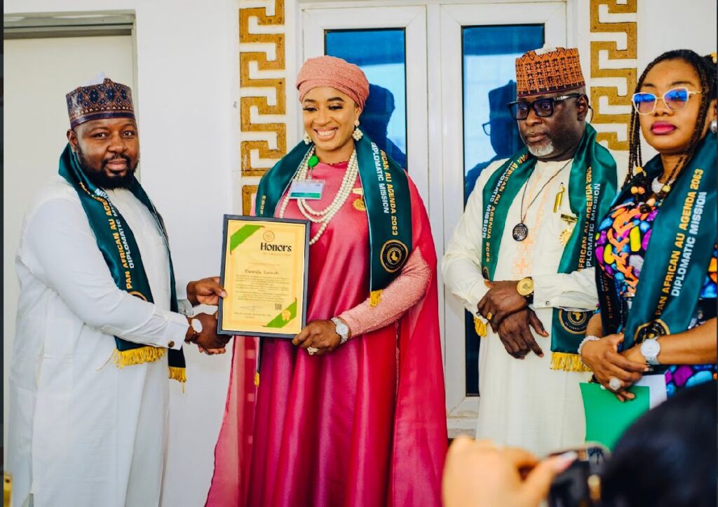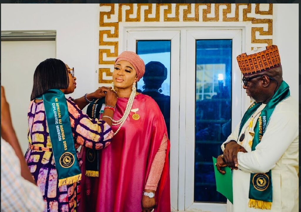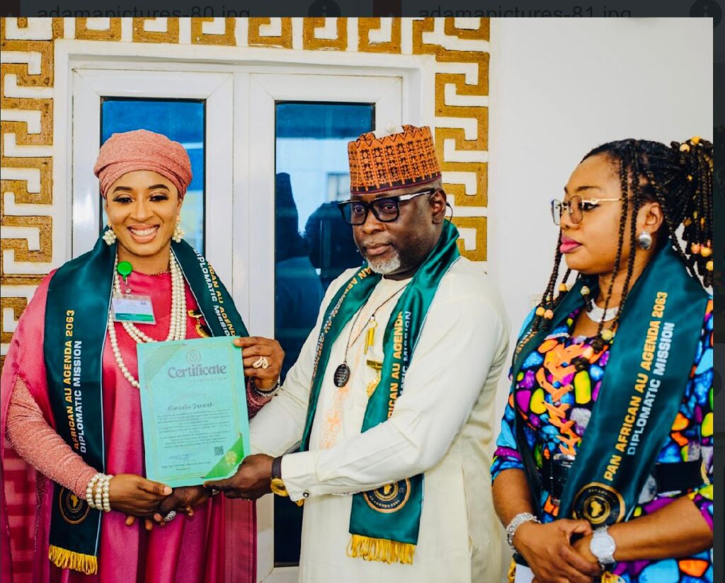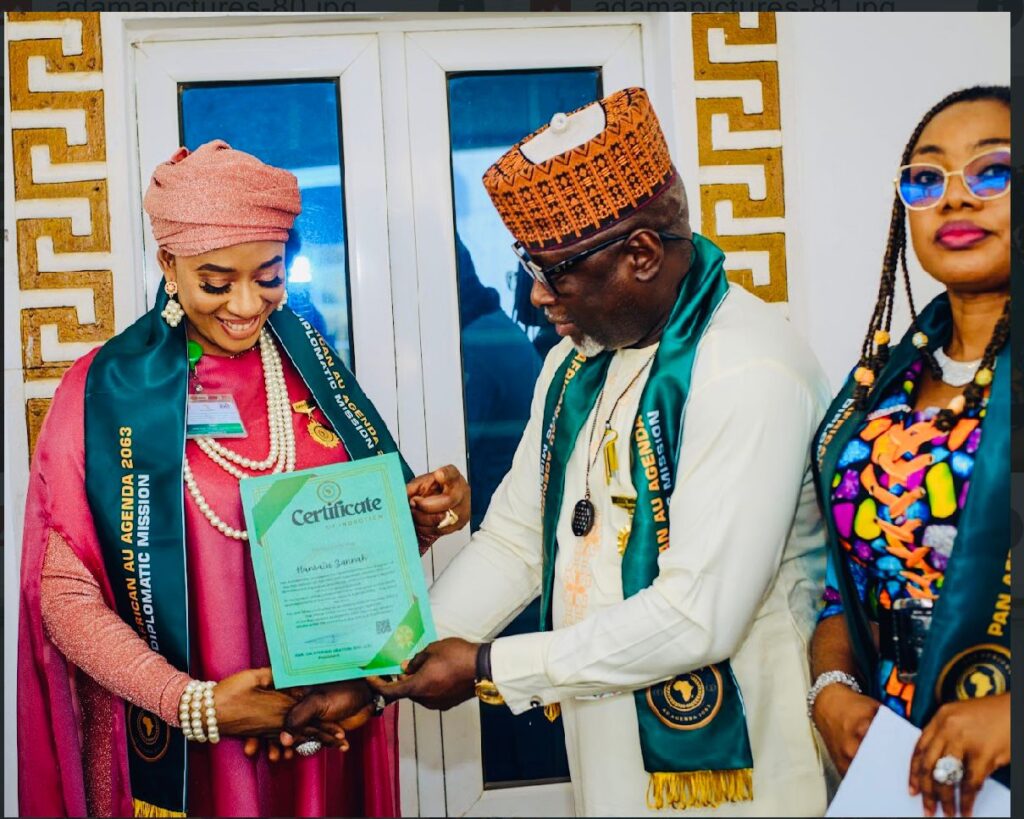 The Pan African Union diplomatic mission has inducted wife of the former deputy Governor of Borno State, Hajia Hansatu Zannah as a member into the Governing Council of AU Agenda 2063 into the Governing Council and Ambassador plenipotentiary.